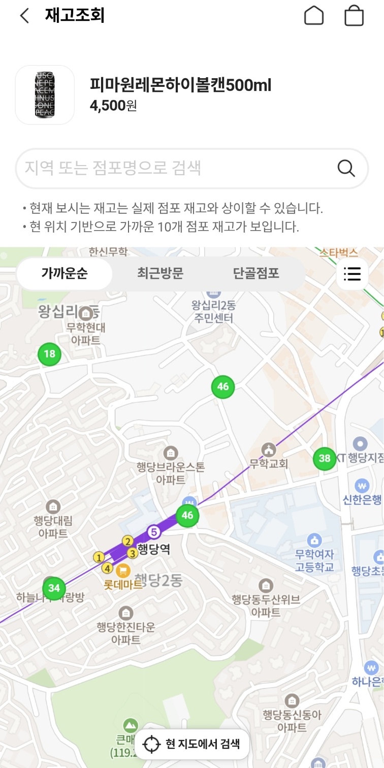- 현재 위치 또는 원하는 지역을 입력하면 근처에 재고가 있는 CU 매장 리스트가 뜹니다.