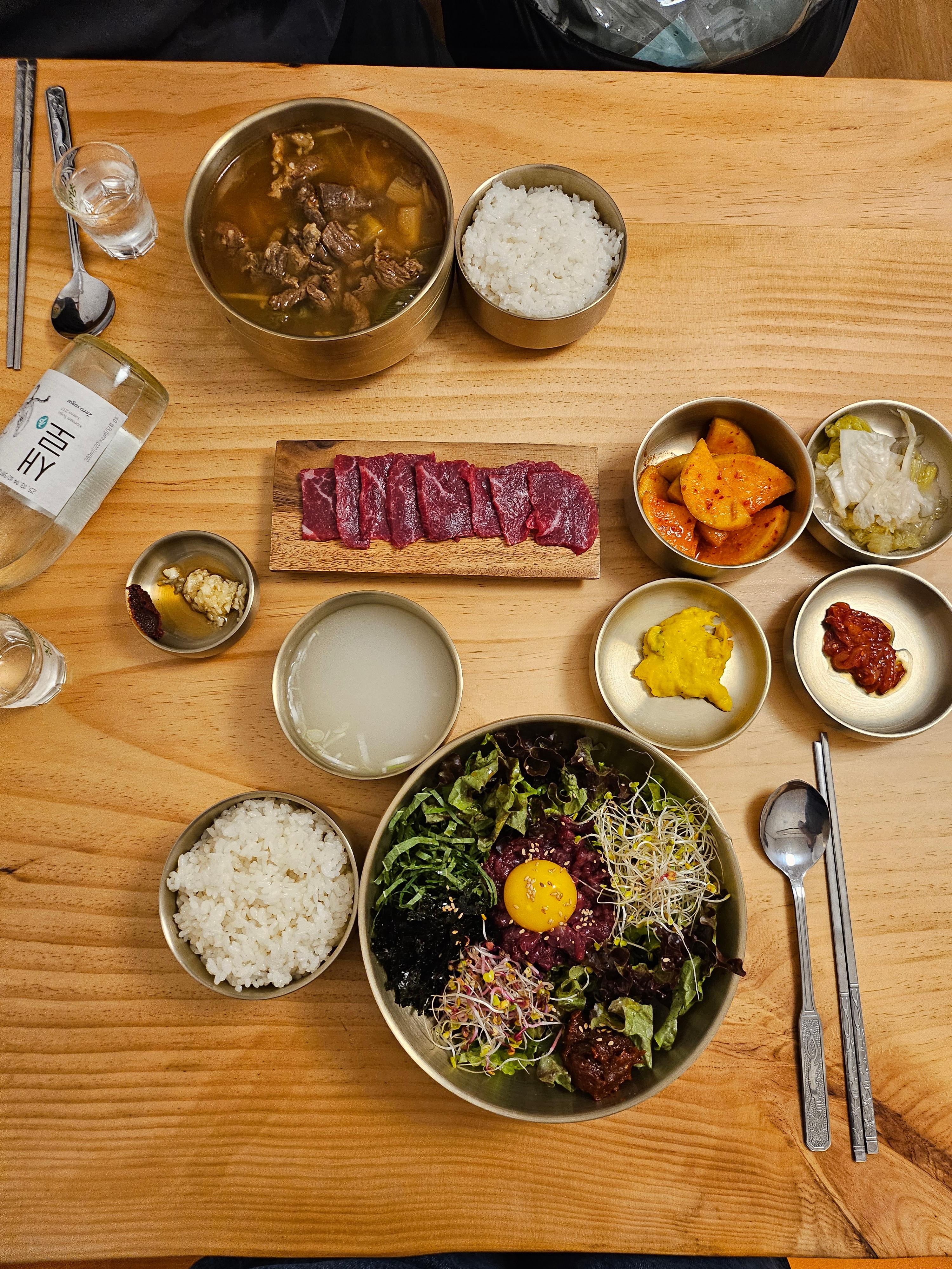 육회비빔밥도 만족도가 높은 메뉴 중 하나였습니다. 육회는 적당히 양념된 상태로 숙성도가 좋았고, 밥 위에 올려진 다양한 채소들을 비비면 입안에서 산뜻하게 퍼지는 조화로운 맛이 느껴졌어요. 점심으로 먹기 딱 좋은 메뉴이며, 자극적인 음식이 부담스러운 분들에게도 추천할 만한 선택입니다.