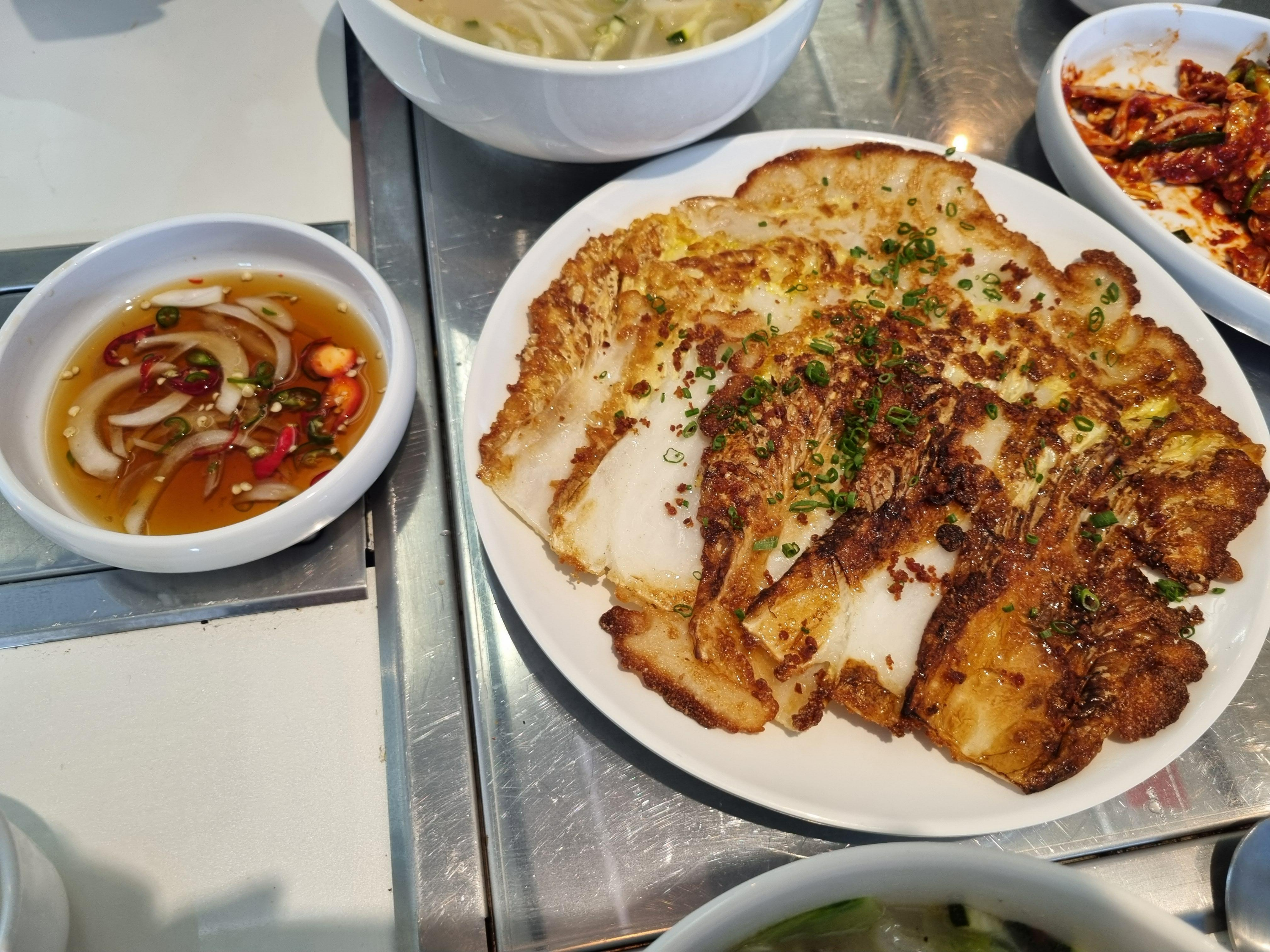 배추 특유의 단맛과 감자전분을 이용한 듯한 부침 반죽의 고소함이 어우러져 밥반찬보다는 술안주로도 잘 어울리는 맛이었습니다.