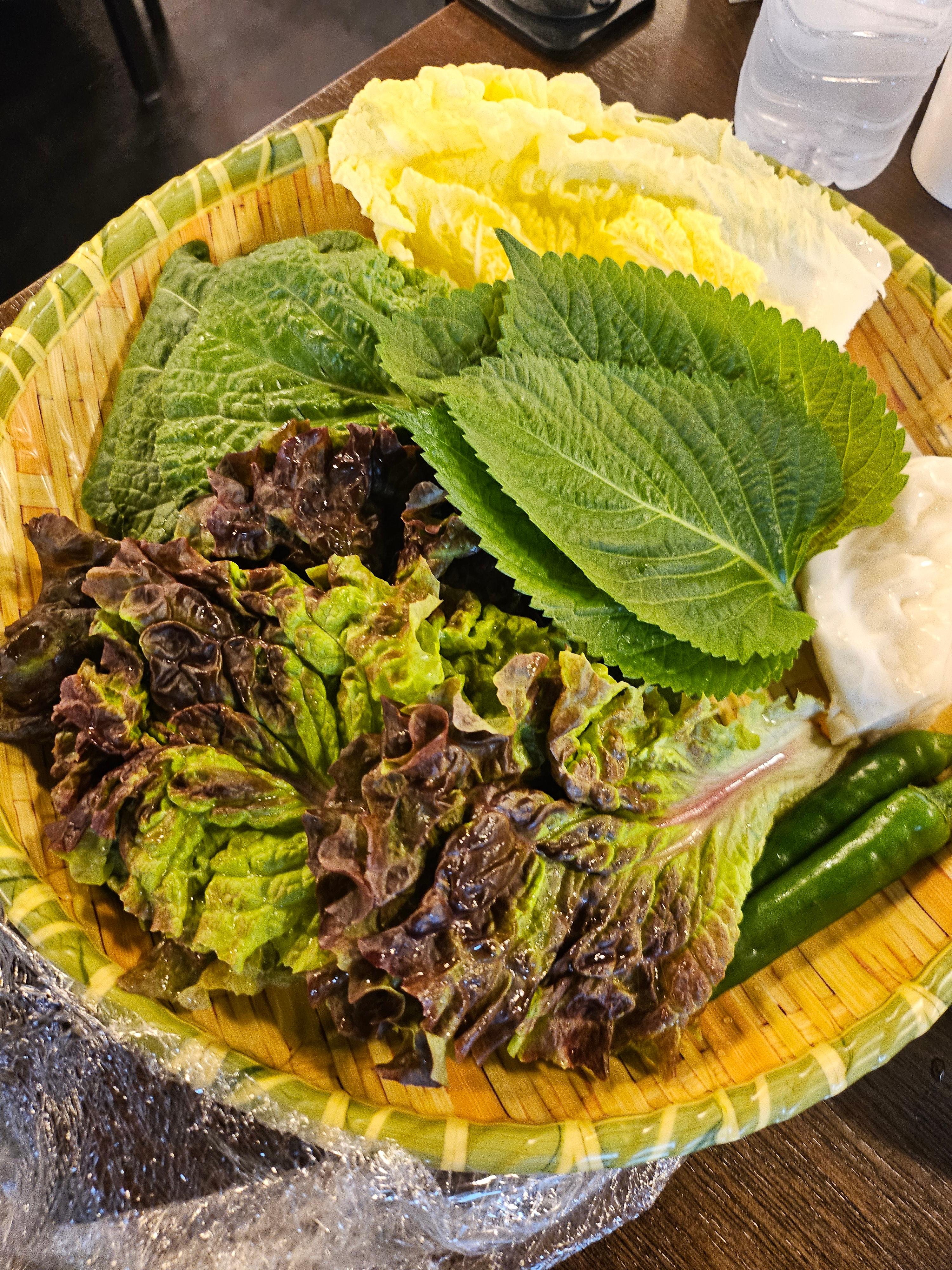 쌈채소는 상추, 고추, 양배추, 얼갈이배추, 알배기배추 등으로 구성해서 신선도가 좋았고,