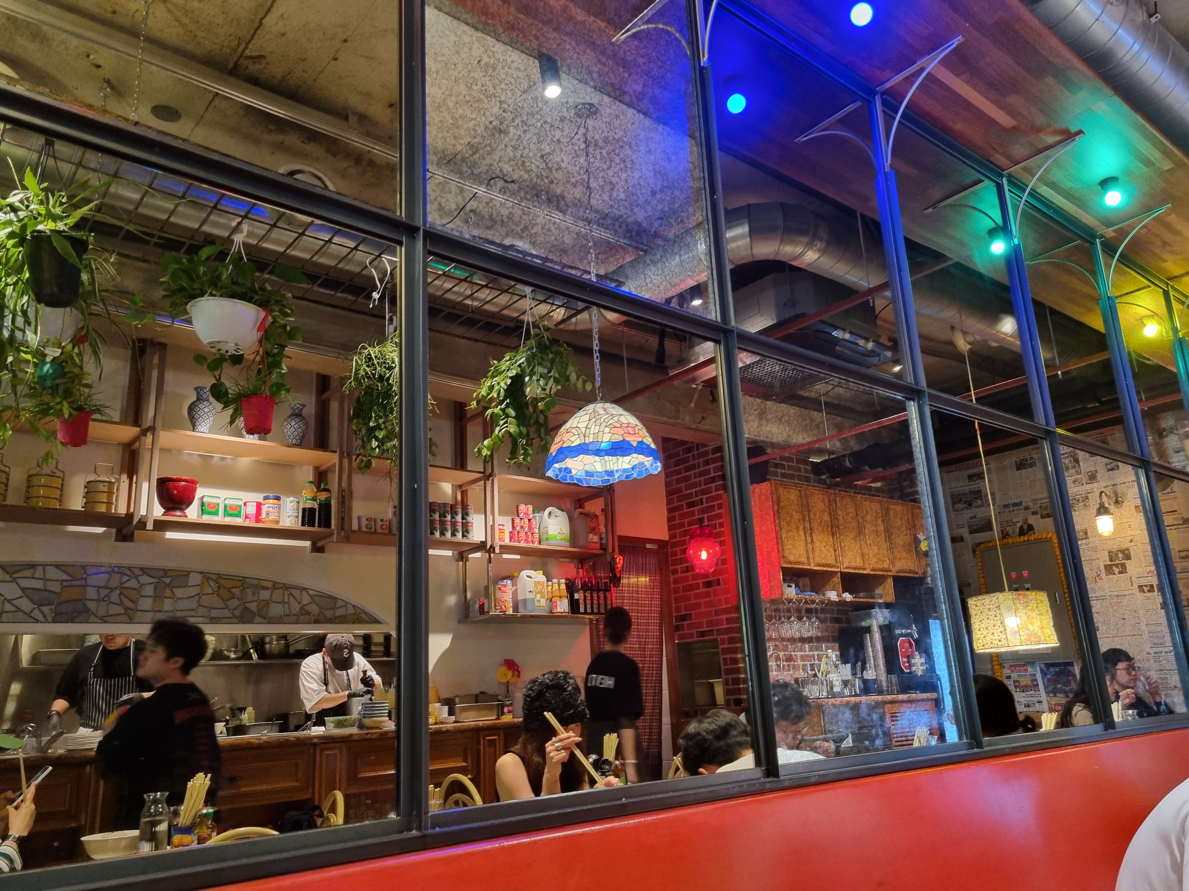 효뜨 내부는 동남아 현지 분위기를 살짝 차용한 인테리어로, 군더더기 없이 아담하고 따뜻한 느낌이었습니다. 테이블 간격이 넓지는 않지만 혼밥, 소규모 모임 모두 가능한 구성이에요. 조명은 은은하고, 창가 자리는 자연광이 들어와서 낮에도 분위기 있게 식사할 수 있어요.