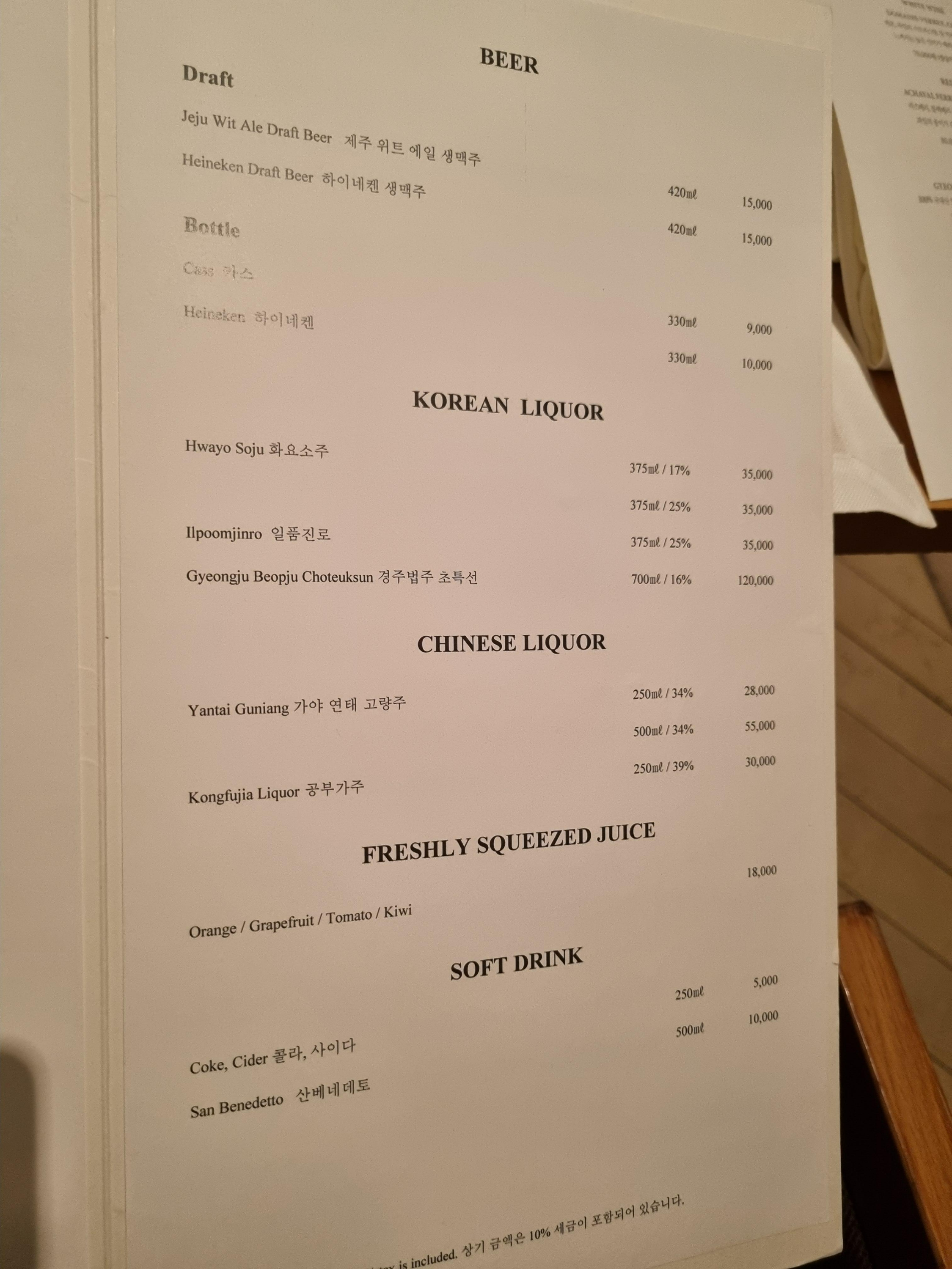 주류 가격은 솔직히 조금 높은 편입니다.
