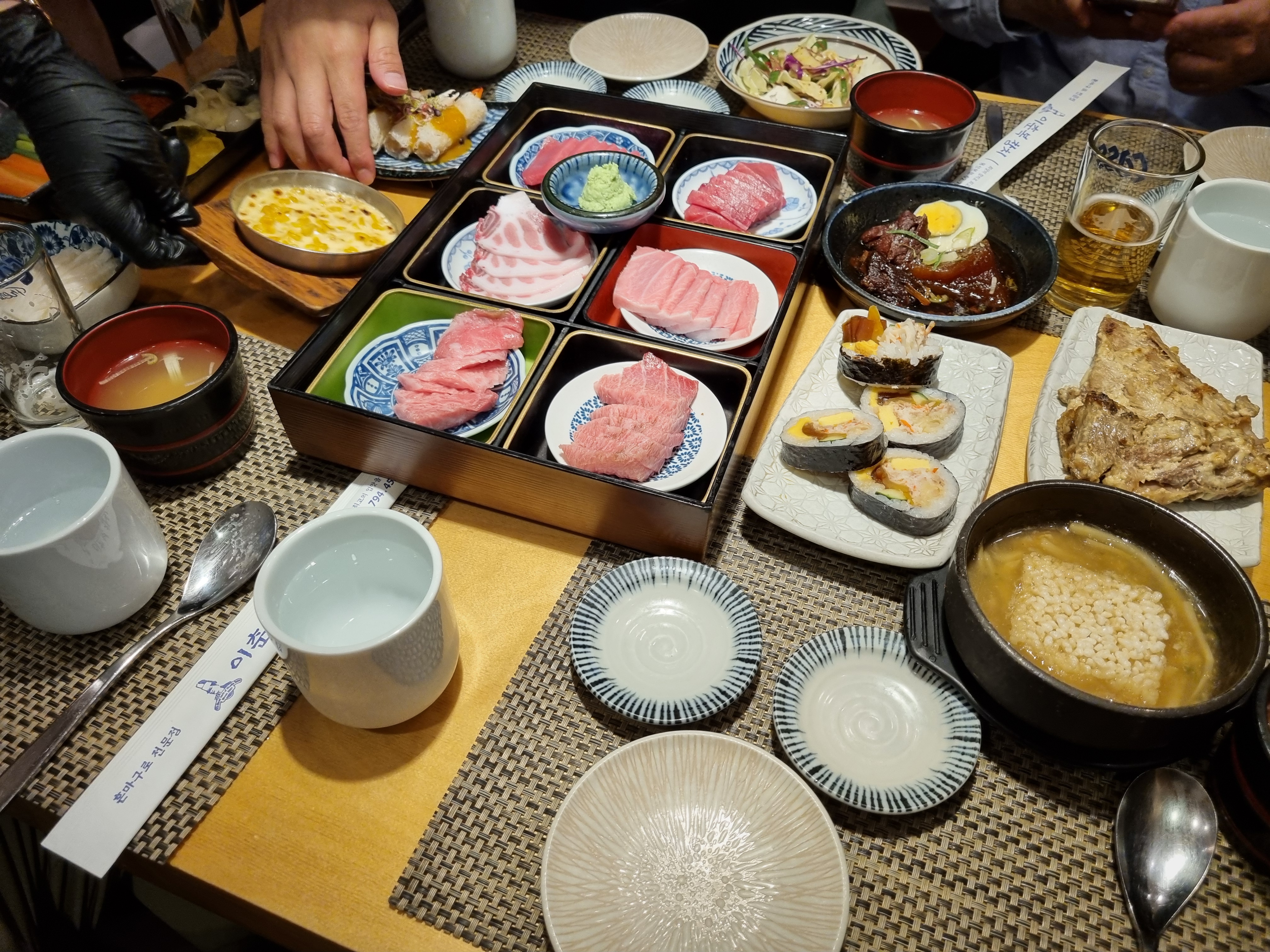 참치의 신선도는 말할 것도 없고, 각 부위가 일정한 두께와 결로 정갈하게 썰려 나와 시각적으로도 만족스러웠습니다. 특히 대뱃살의 기름진 풍미와 머릿살의 쫄깃한 식감은 감탄을 자아내게 했습니다. 양도 넉넉하게 제공되는데 리필까지 가능하니 남성 넷이서도 배부르게 먹을 수 있었습니다.