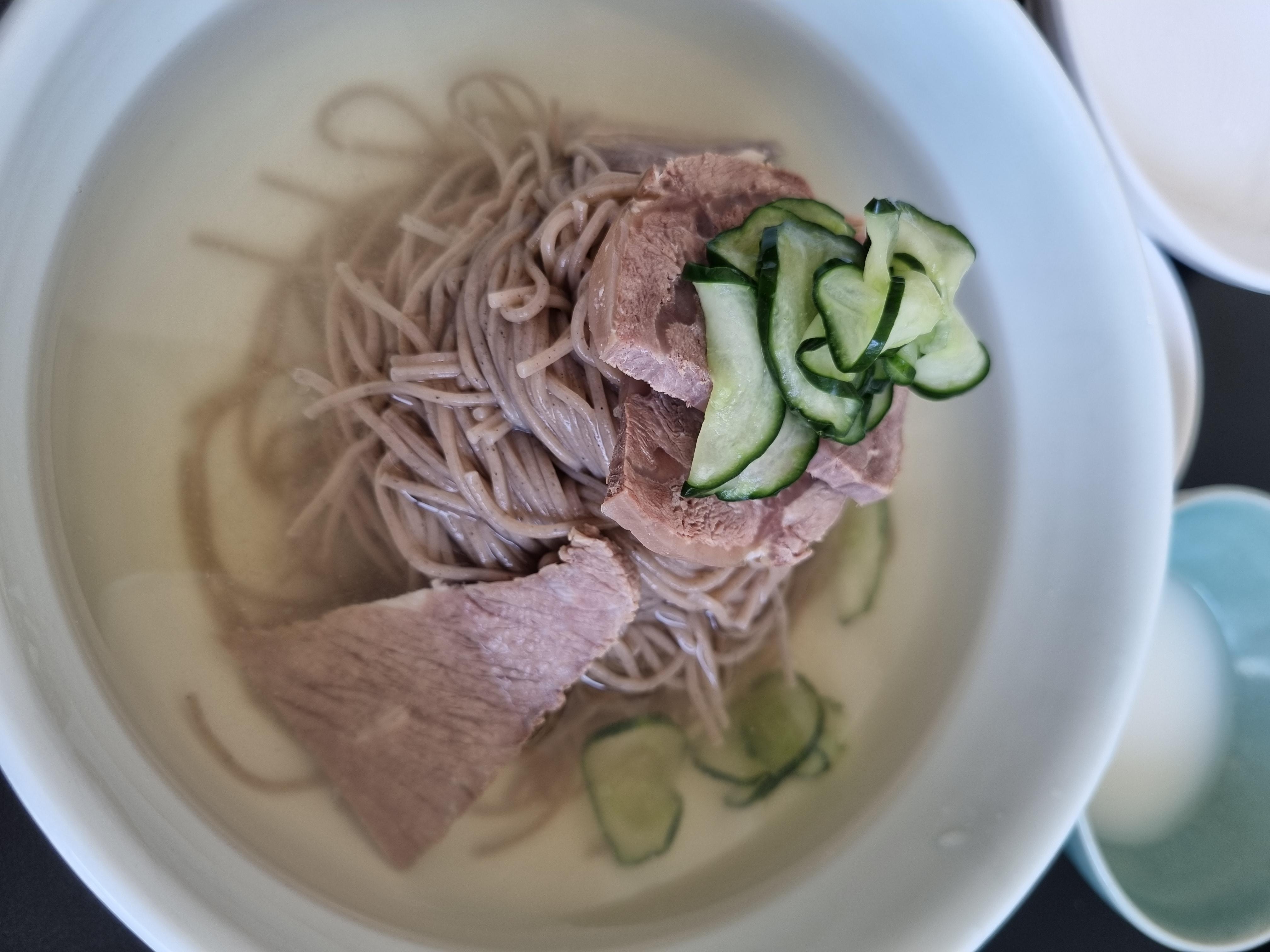 깔끔한 소고기 육수에 담긴 냉국수는 평양냉면 느낌도 있지만, 육향이 더 깊습니다.