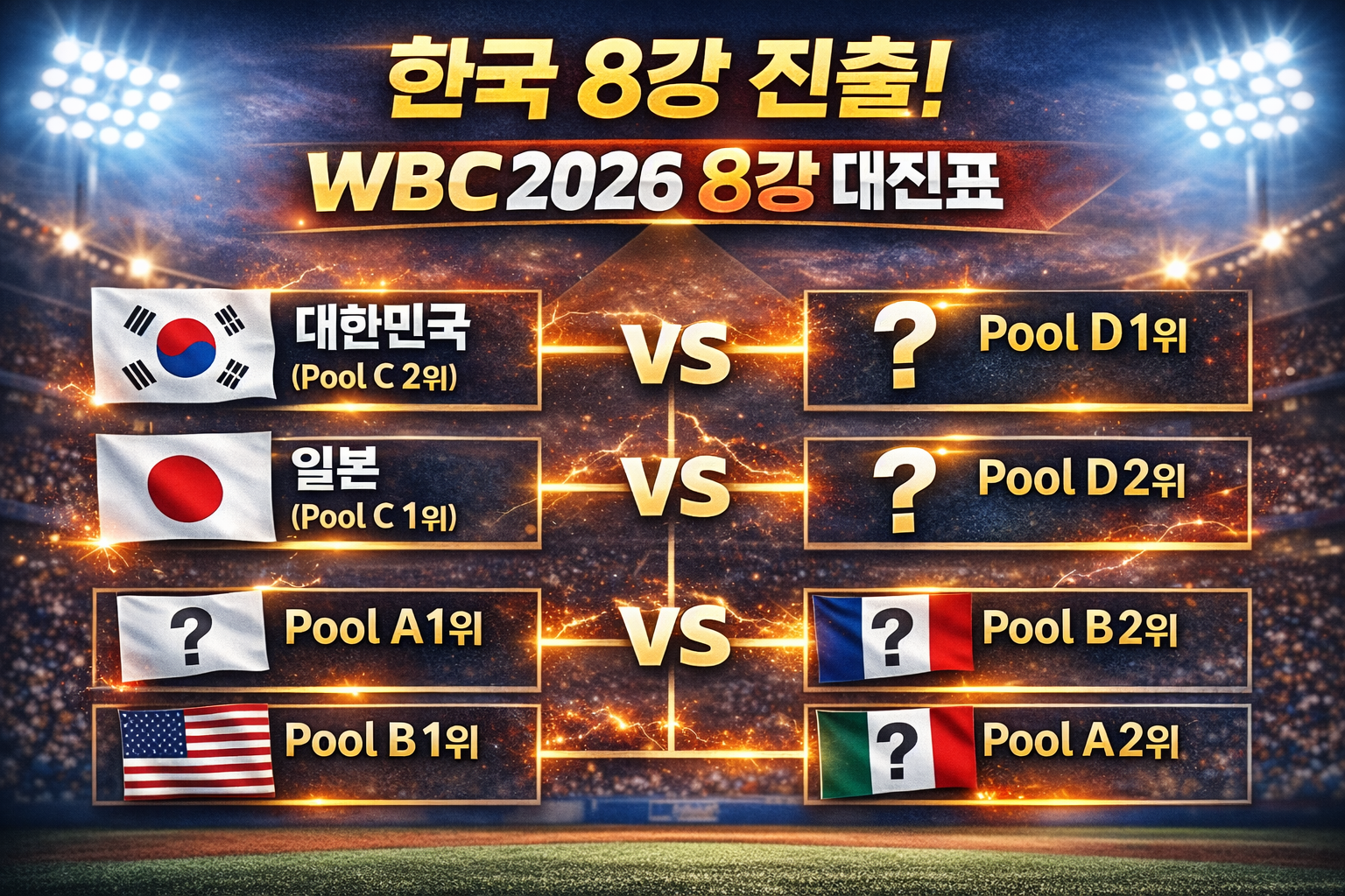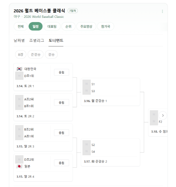 2026 WBC 한국 8강 대진표가 확정된 지금, 남은 건 응원뿐입니다. 이번에는 정말 더 높은 곳까지 올라가길 기대해봅니다.