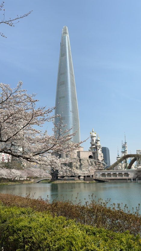 롯데월드와 함께 즐길 수 있는 벚꽃 명소입니다. 호수를 따라 벚꽃이 둘러싸고 있어 사진 촬영 명소로 유명합니다.