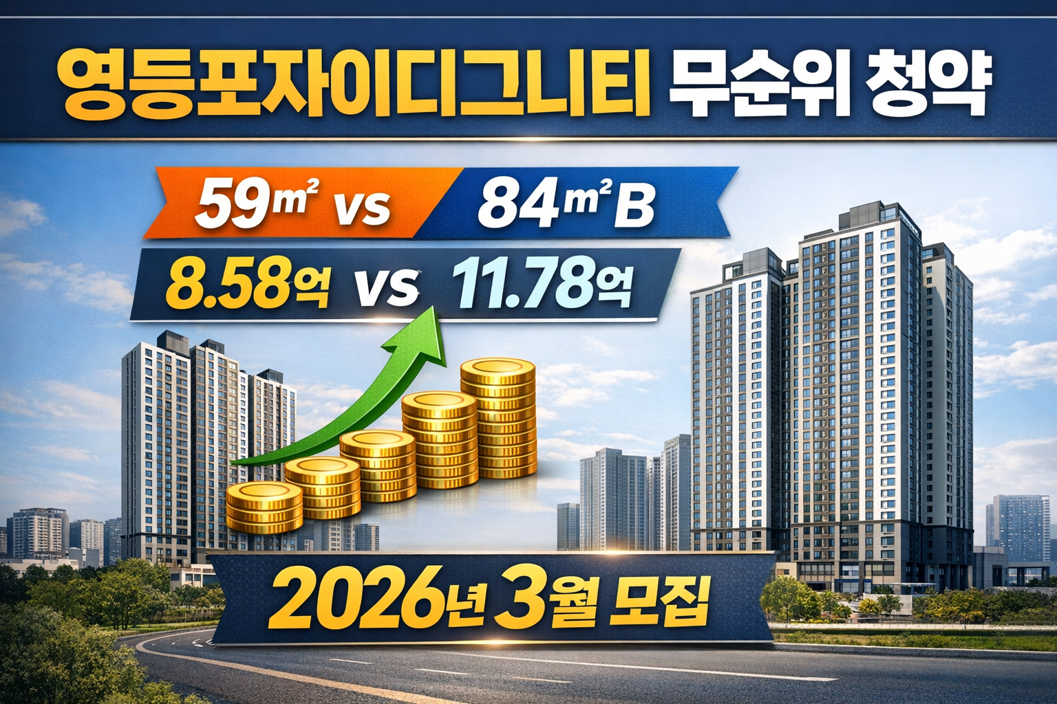 이번 영등포자이디그니티 무순위 청약이 대중적인 관심을 받는 이유는 명확합니다. 바로 시세 차익 기대감입니다. 최근 기사들에서는 전용 59㎡의 경우 약 6억 원대, 전용 84㎡의 경우 최대 9억 원 수준의 시세 차익 가능성이 거론되고 있습니다.