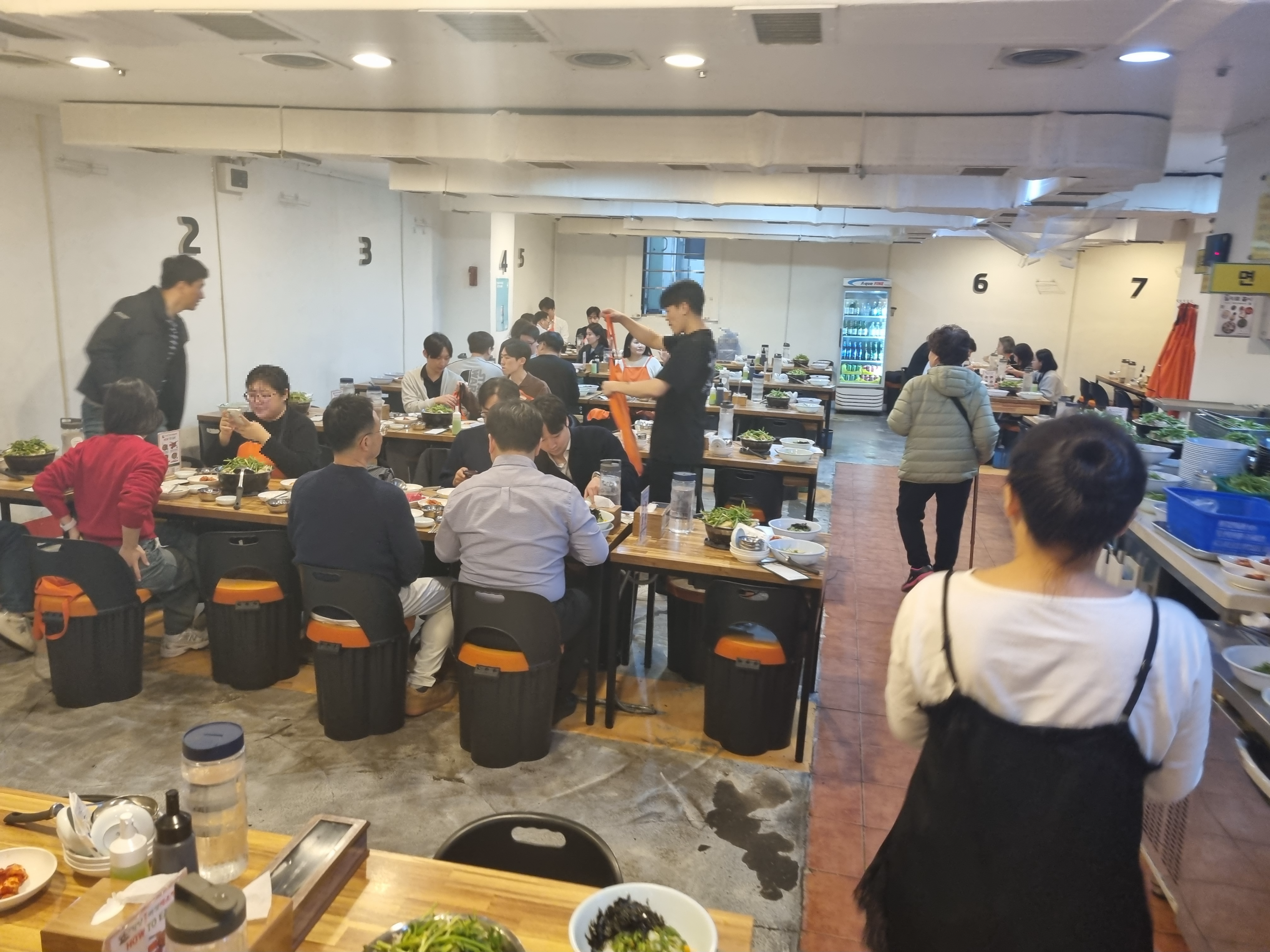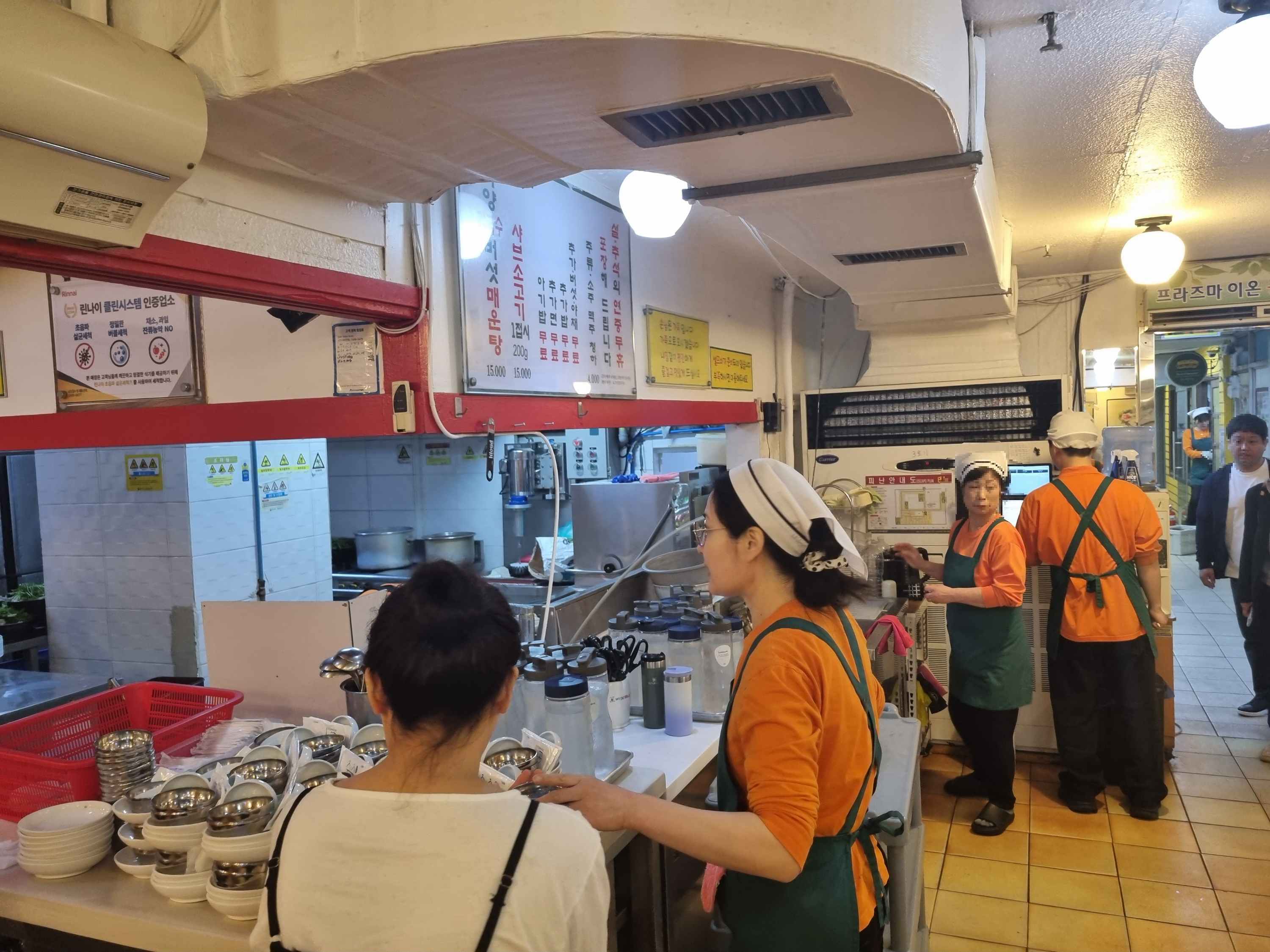 저희는 오픈 시간에 맞춰 움직였기 때문에 웨이팅 없이 바로 입장할 수 있었습니다. 여의도에서 유명한 식당들은 점심시간에 대기 줄이 생기는 경우가 많은데, 이곳은 매장 자체가 넓어서 그런지 초반에는 비교적 쾌적하게 들어갈 수 있었어요. 좌석 간격도 답답하지 않았고, 여러 명이 함께 와도 크게 불편하지 않은 구조라 가족 식사나 소규모 모임에 잘 맞아 보였습니다.