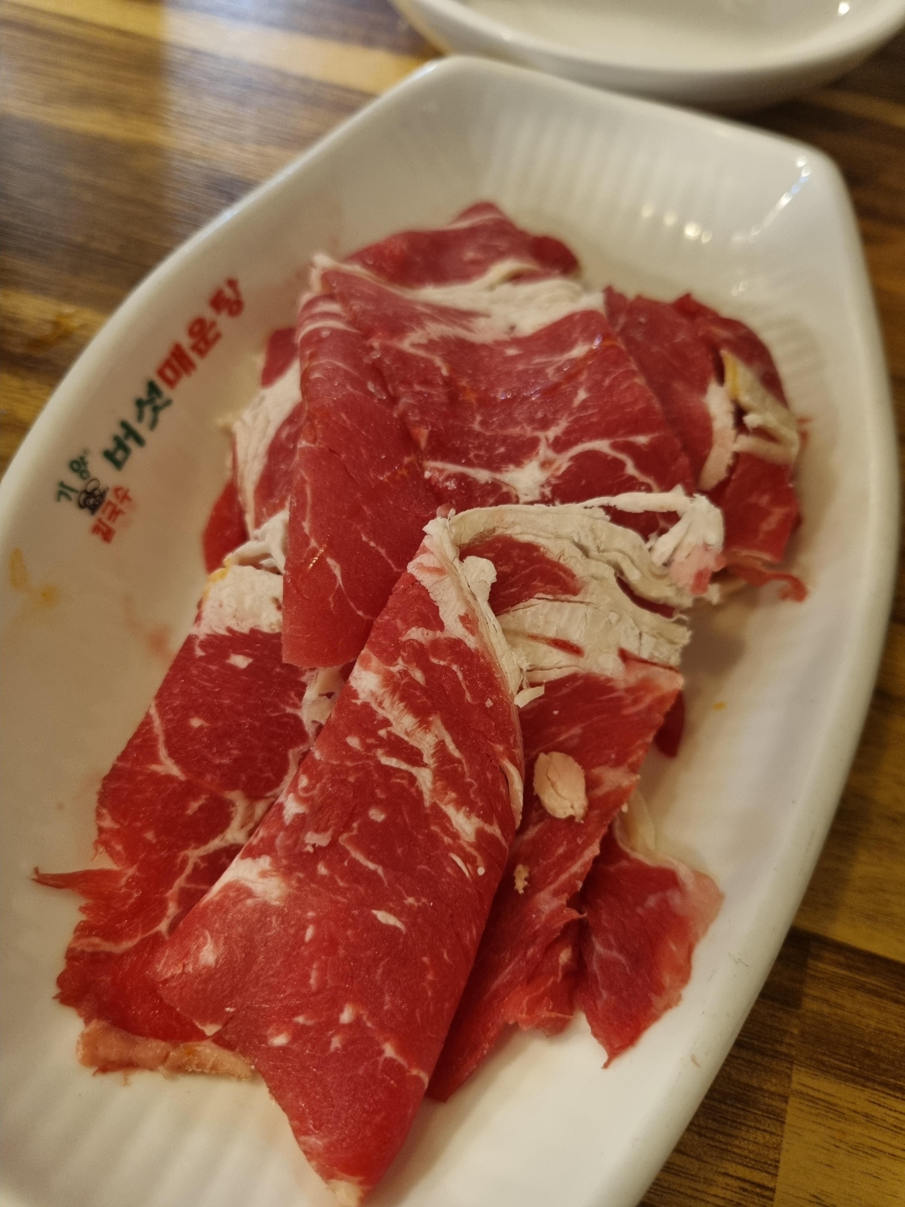 이번에 저희가 주문한 메뉴는 버섯매운탕과 샤브용 고기였습니다. 사실 이 집은 이름에서부터 메뉴 정체성이 아주 분명하죠. 버섯매운탕이 메인이고, 여기에 샤브용 고기를 추가해서 더 풍성하게 즐기는 방식입니다. 이름만 들으면 얼큰하고 자극적인 국물을 상상할 수 있는데, 막상 먹어보면 생각보다 버섯 향과 육수 맛이 중심을 잘 잡고 있어서 단순히 맵기만 한 스타일은 아니었습니다.